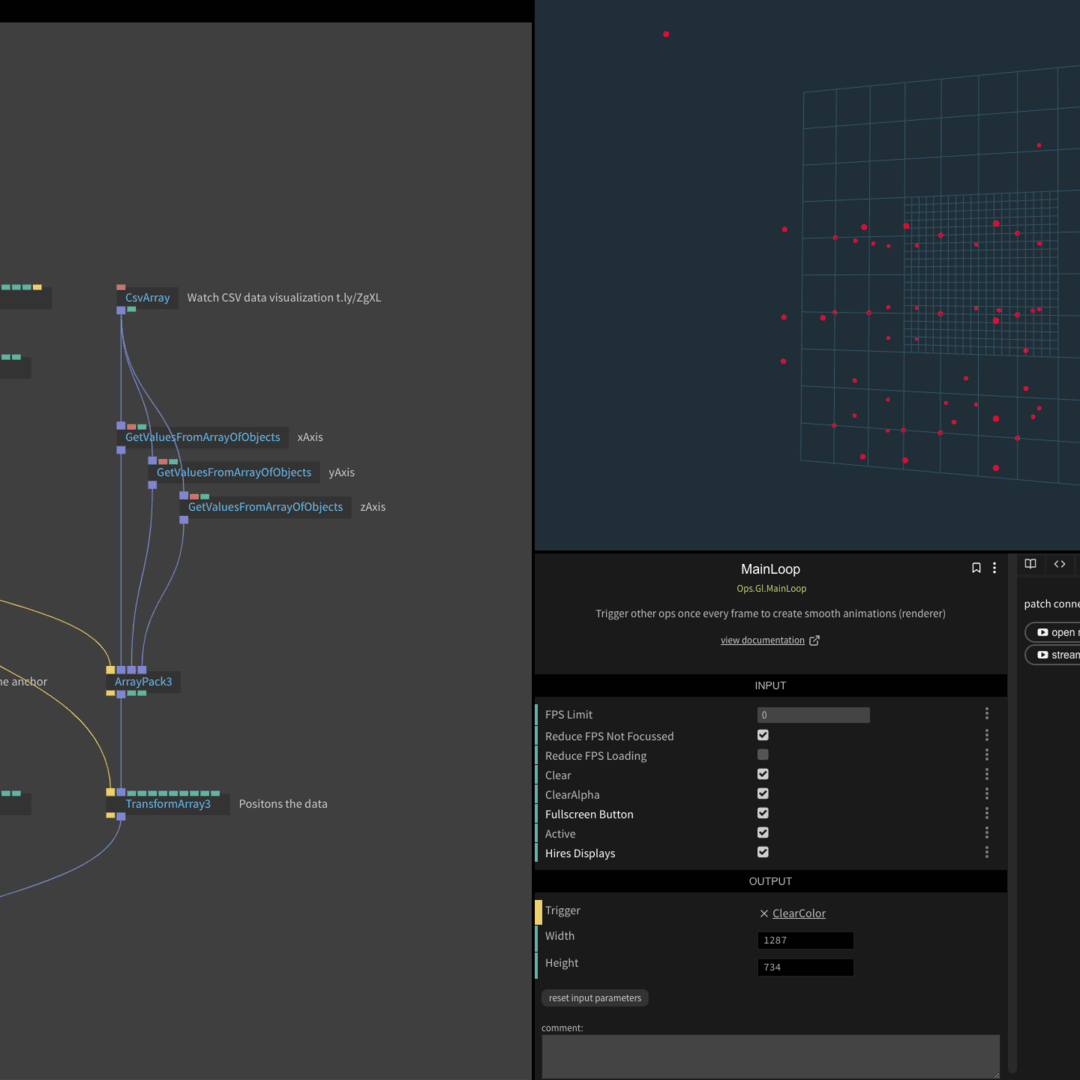 3D data plots created within a node-based generative programming environment.